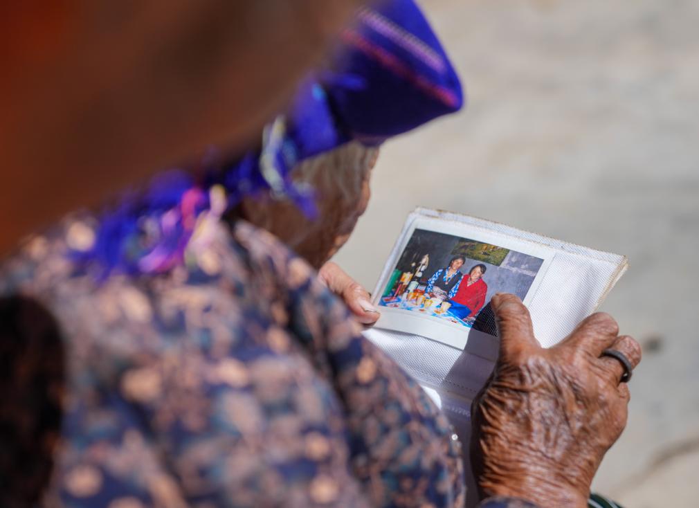 貢覺曲珍在家中翻看相冊(3月6日攝)。