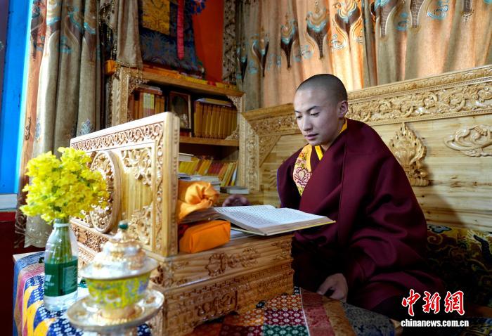 “哲學類的書籍很有趣,閱讀中會聯(lián)想到佛陀思想的異同?!痹谖鞑刈灾螀^(qū)昌都市邊壩縣拉孜寺的僧舍里,阿旺洛?!は虬涂酥檎陂喿x自己心儀的書籍。