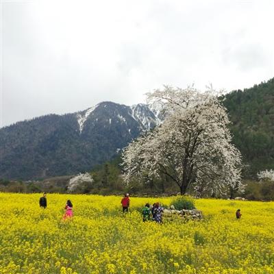 說起高原之春,就不得不提林芝“桃花節(jié)”了。林芝桃花以其獨特的風光盛名在外、享譽全國。最具代表性的要數(shù)波密的野生桃花,其樹干雄勁、花朵綻放、春意盎然。粉嫩的桃花,在雪山懷抱中彰顯著無限柔媚。妖嬈的桃花映著蔚藍云天,美不勝收。那一片片野生桃林掩映在皚皚雪山之下,油菜花襯托其間,美得不可方物,仿若人間仙境。