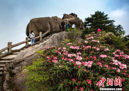 “五一”小長假期間,正值黃山杜鵑盛花期,綻放的杜鵑花與該景區(qū)奇松怪石相映成趣。 鄧嵩山 攝