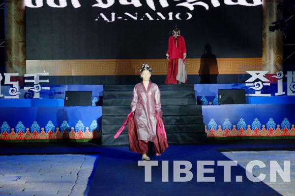 AJNAMO品牌服裝秀是此次巡展活動(dòng)的首場(chǎng)藏裝T臺(tái)秀。為參加此次巡展,知名藏族歌手、登上國(guó)際時(shí)裝周的少數(shù)民族設(shè)計(jì)師阿佳娜姆,帶來(lái)了自己親手設(shè)計(jì)的40多套藏族服飾,以高原紅、哈達(dá)白與牦牛黑來(lái)詮釋藏族服飾。