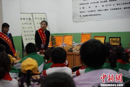 圖為5月18日,西藏博物館講解員向?qū)W生們講解珍品文物仿制品的歷史。攝影:趙玉芹