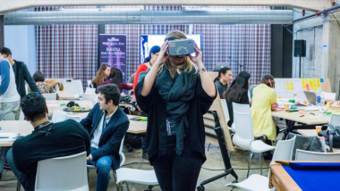 圖為比賽現(xiàn)場參賽者們正在嘗試VR方案 圖片來源:中國網(wǎng)
