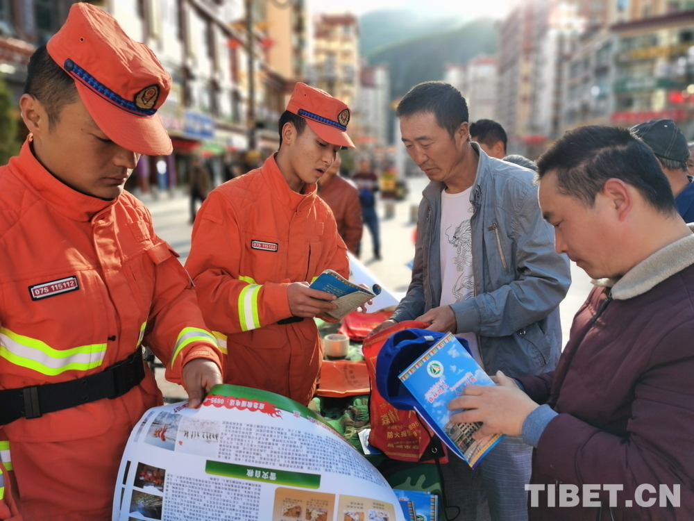 圖為昌都市森林消防支隊在游人如織的街頭宣傳防火知識