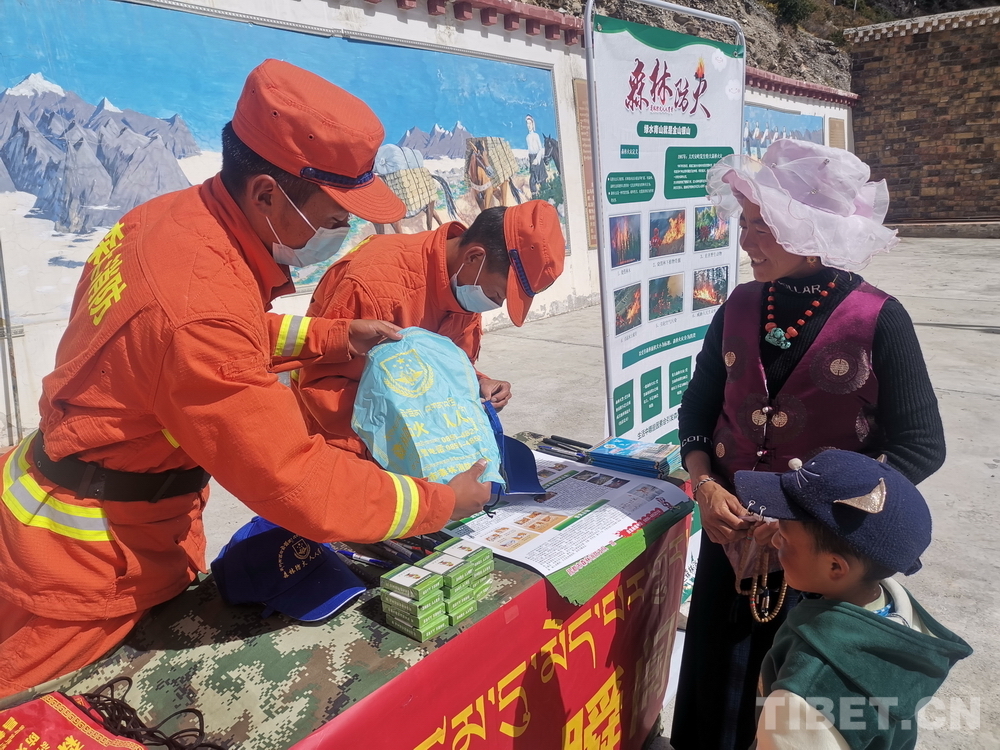 圖為昌都市森林消防支隊在景區(qū)宣傳防火知識