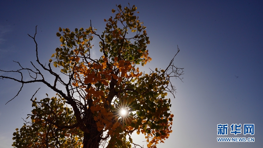胡楊的葉子在陽光的照射下熠熠生輝。新華網(wǎng) 潘彬彬 攝