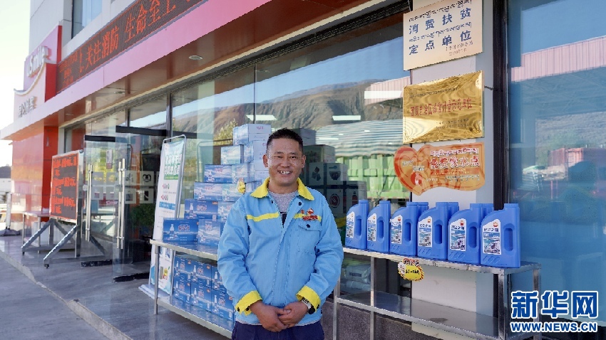 日喀則市大地加油站站長邊巴扎西(10月24日攝)。新華網(wǎng) 達(dá)珍 攝