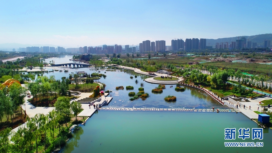 圖為北川河濕地公園。新華網(wǎng)發(fā)(黎曉剛攝)