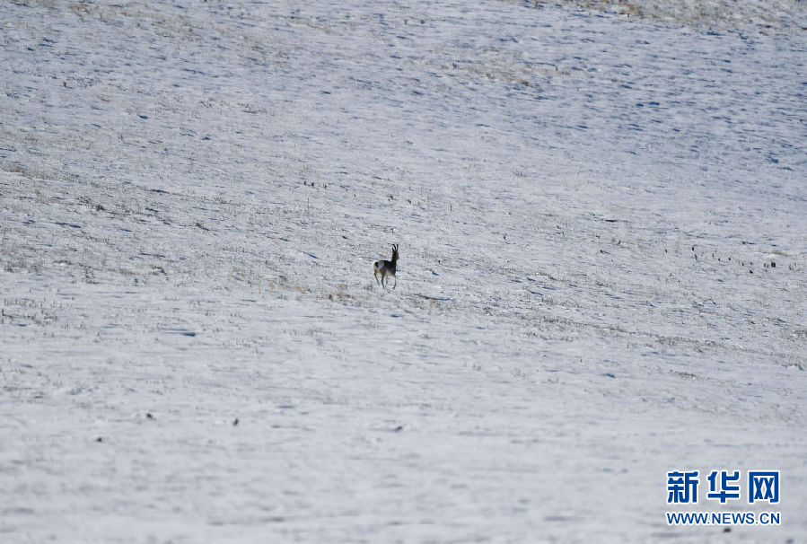 這是10月29日在青海省玉樹(shù)藏族自治州稱(chēng)多縣嘉塘草原上拍攝的一只藏原羚。新華社記者 張龍 攝
