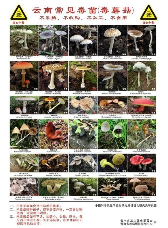 因此,云南省各級黨委政府和相關(guān)部門,將野生菌中毒防控工作作為為民辦實事的一項具體行動,狠抓防控宣傳教育和應(yīng)急救治。不僅在各類媒體上通過各種形式對野生菌中毒防控進(jìn)行了廣泛宣傳,還印制了大量野生食用菌中毒防控宣傳掛圖和折頁,發(fā)到村村寨寨、家家戶戶。