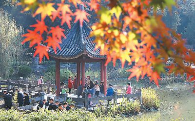 近日,江蘇南京棲霞山景區(qū)的紅葉樹種進(jìn)入最佳觀賞期,漫山遍野的紅葉燦若云霞,令游客流連忘返。李文寶攝(新華社發(fā))