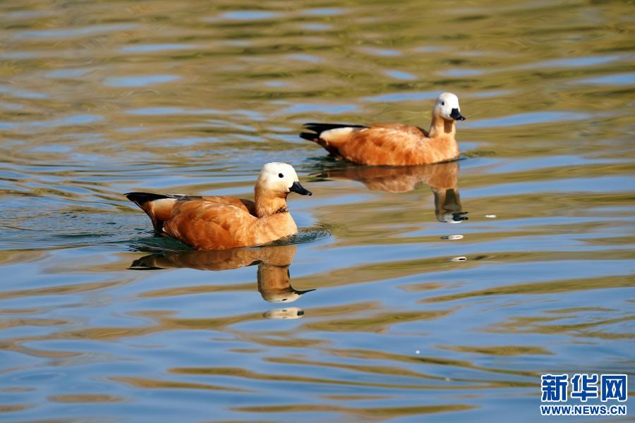 11月23日,赤麻鴨在龍王潭公園的水面上游弋。新華社記者 詹彥 攝