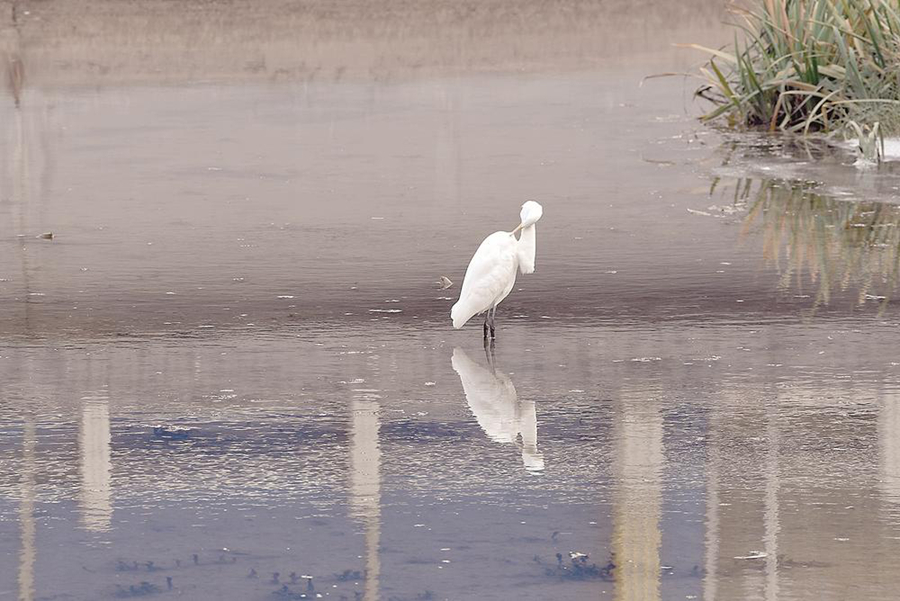 這只大白鷺在南川河人工島附近來回覓食,不時伸展脖子,蹬了一下腿后,輕輕一飛,落在了湟水河河道中的一塊石頭上,單腳挺立,站在上面閉目養(yǎng)神。中午時分,河道周邊相對安靜,加上往來的人群相對較少,大白鷺在河中覓食、休憩,十分愜意。