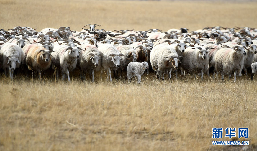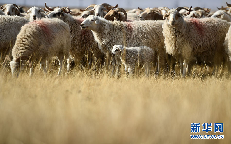 初冬時(shí)節(jié),一場小雪浸潤了青海湖北岸的草原,披著薄紗的草原草色金黃,這里成為母羊產(chǎn)羔的大“產(chǎn)房”。