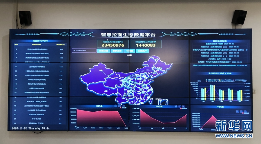 圖為“智慧拉面”生態(tài)數據平臺。新華網 魚昊攝