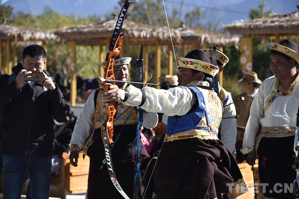 圖為西藏自治區(qū)林芝市一場工布響箭比賽現(xiàn)場 攝影:王媛媛