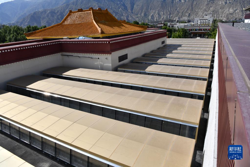 中建一局工作人員檢查高散輻射主動式太陽能供暖設(shè)備(7月6日攝)。新華社記者 晉美多吉 攝