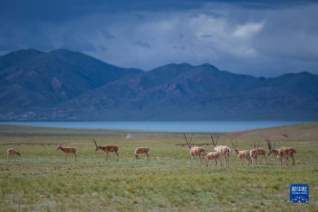 這是在羌塘國(guó)家級(jí)自然保護(hù)區(qū)內(nèi)拍攝的藏羚羊(7月11日攝)。新華社記者 周荻瀟 攝