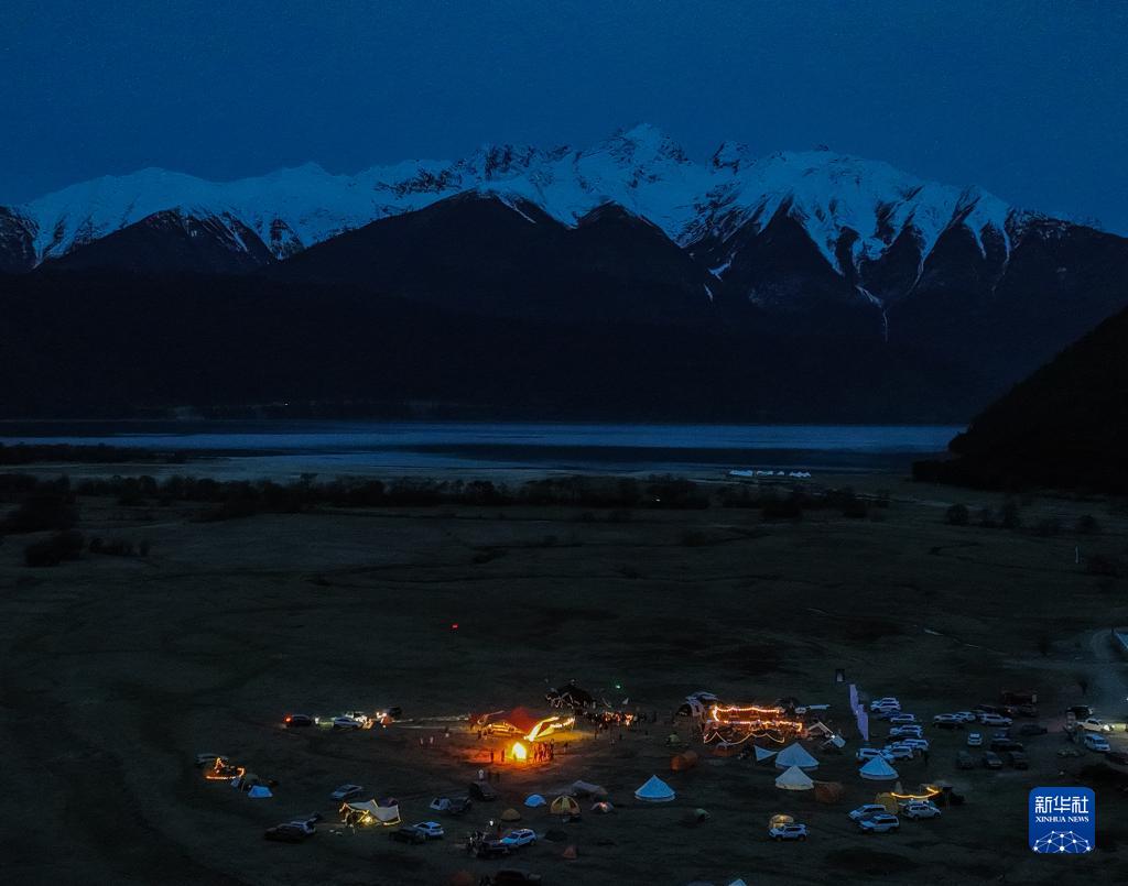 當(dāng)日,西藏舉辦“巴松措漂流露營大會(huì)”。春日里的巴松措湖水清澈,雪山環(huán)繞,景色宜人,吸引了來自全國各地的游客到此體驗(yàn)露營生活。