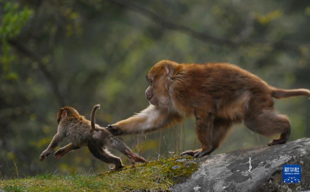 勒布溝里的獼猴(4月25日攝)。新華社記者 劉洪明 攝