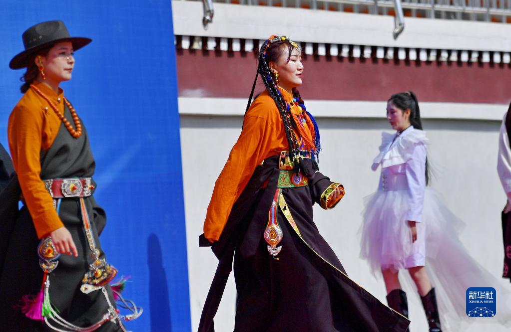 5月10日,西藏技師學(xué)院學(xué)生進行傳統(tǒng)服飾表演。新華社記者 張汝鋒 攝