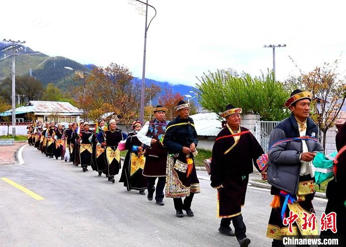 圖為村民在載歌載舞過望果節(jié)?!∴嚢?攝