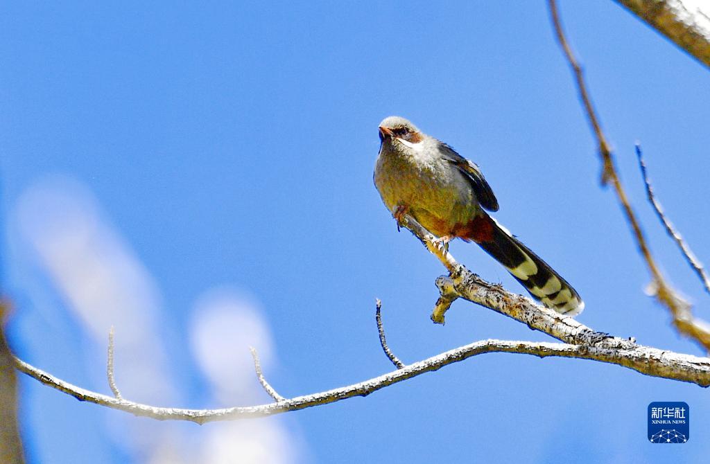 這是在拉薩市城關(guān)區(qū)蔡公堂街道次角林村拍攝的灰腹噪鹛(5月14日攝)。新華社記者 張汝鋒 攝