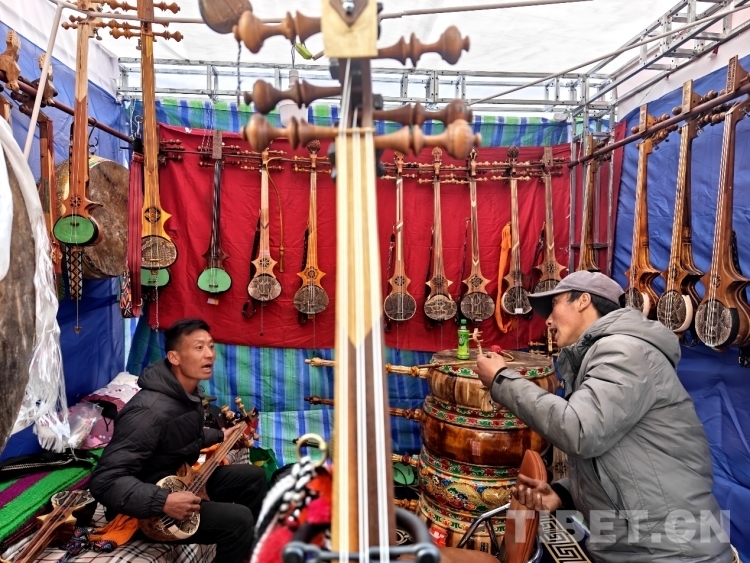 “參加雅礱物交會是扎念琴銷售的重要渠道,上一屆雅礱物交會,會期還沒結(jié)束帶的產(chǎn)品都賣光了,所以這次特意提前準(zhǔn)備、多備了一些貨品,相信會賣得很好?!苯衲?6歲的次仁多吉是山南市加查縣人,17歲時,次仁多吉開始跟隨父親學(xué)習(xí)扎念制作技術(shù),如今能夠熟練制作扎念琴。在他的攤位上,悠揚的的扎念琴聲不斷傳出,吸引了不少逛展群眾駐足,他也會熱情邀請群眾體驗扎念琴彈奏并簡單介紹構(gòu)造等希望扎念琴文化推廣得更遠(yuǎn)。