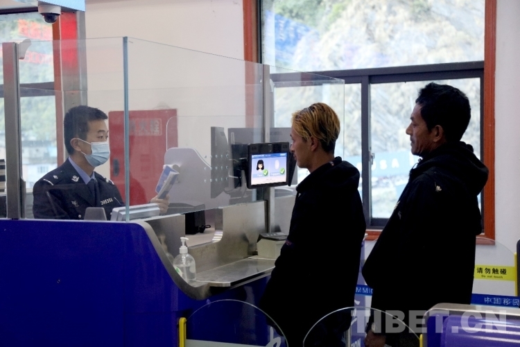 圖為聶拉木邊檢站民警對(duì)出入境人員進(jìn)行驗(yàn)放 攝影:鄒興國(guó)