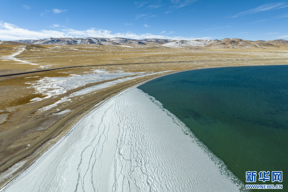 12月15日拍攝的蓬錯湖邊(無人機照片)。新華網(wǎng) 旦增努布 攝