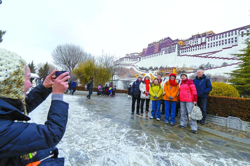 “冬游西藏”活動開展以來,吸引大批全國各地游客進(jìn)藏旅游,實(shí)現(xiàn)西藏冬季旅游有溫度、淡季不淡的高質(zhì)量旅游發(fā)展新格局。圖為1月16日,來自上海的游客在布達(dá)拉宮腳下打卡留念。記者 潘多 攝