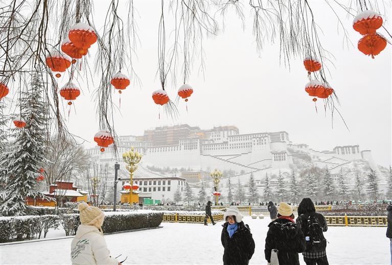 1月18日是農(nóng)歷臘八節(jié),拉薩也迎來了新年之后的第二場大雪,古城處處銀裝素裹,布達拉宮在白雪映襯下,顯得格外圣潔莊嚴。