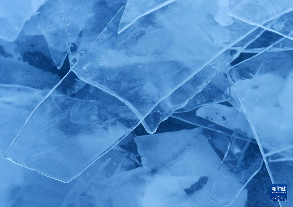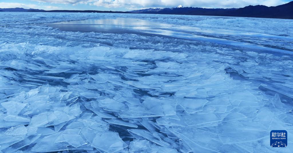 瑪旁雍錯湖面上的冰像碎玻璃一樣透亮(1月29日攝)。新華社記者 關明輝 攝 ??