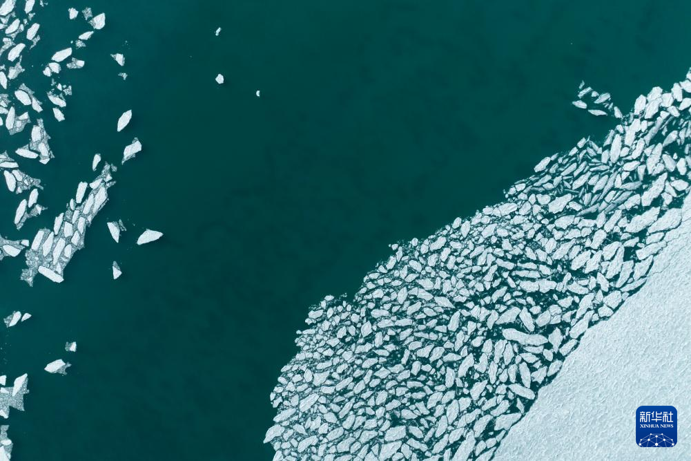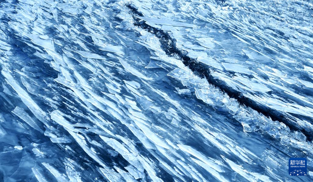 瑪旁雍錯湖面上的冰堆積在一起,呈現出各式各樣的造型(1月29日攝,無人機照片)。新華社發(fā)(旦增努布攝) ??