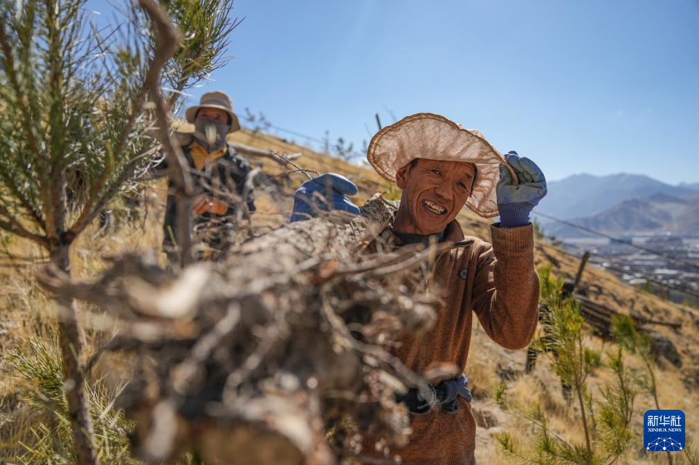 仁增早已把西嘎山當作了自己的“家”,他站在種樹的人群中,擦掉額頭的汗珠說道:“這漫山遍野的小樹苗就像是我的孩子一樣,我期待著它們茁壯成長。種樹是功在當代利在千秋的事情,給子孫后代們一座綠油油的山是我的夢想。” ??