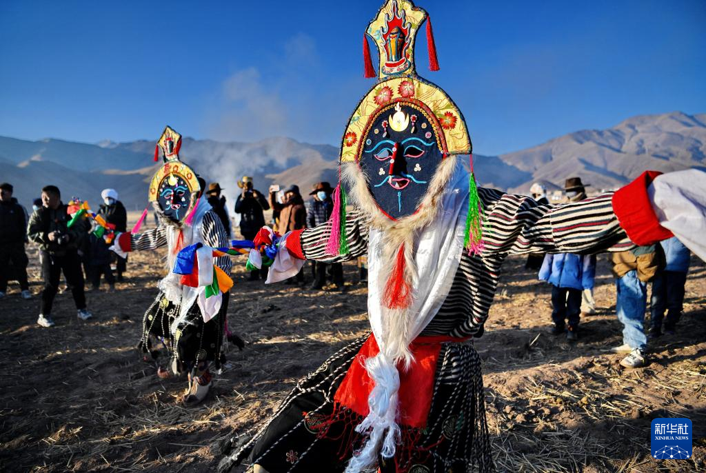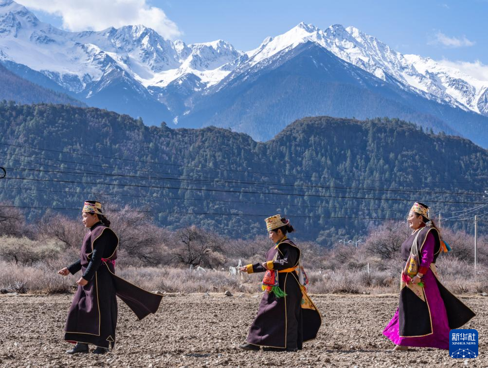 3月16日,在西藏拉薩市林周縣春堆鄉(xiāng)的春耕儀式現(xiàn)場,當?shù)厝罕姳硌莶貞?。新華社記者 張汝鋒 攝 ??