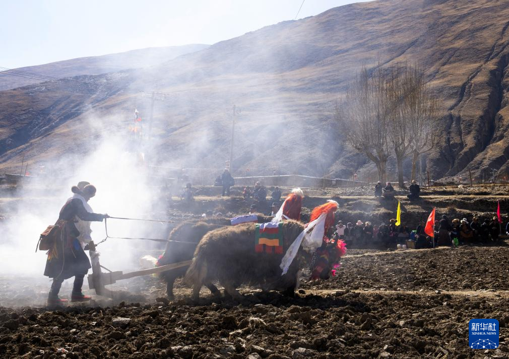 這是3月16日拍攝的西藏林芝市工布江達縣巴河鎮(zhèn)秀巴村的春耕儀式現(xiàn)場。新華社記者 孫非 攝 ??
