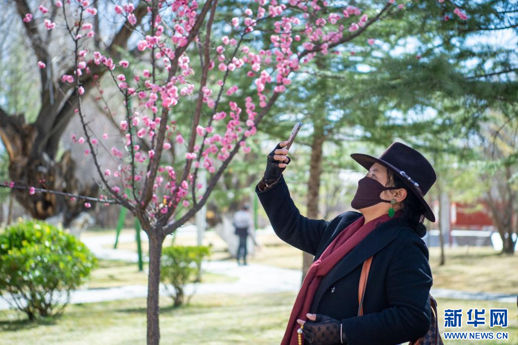 3月15日,群眾在宗角祿康公園賞花、拍照。新華網(wǎng) 旦增努布 攝