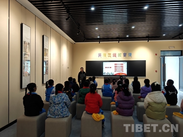圖為開館儀式當天,當?shù)貙W生在展館內(nèi)上民族團結(jié)教育課