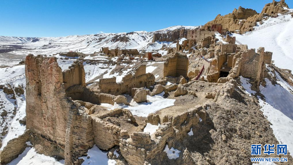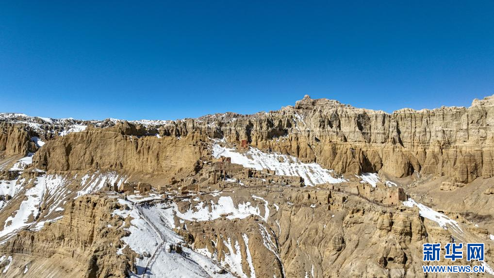 達巴遺址位于西藏阿里地區(qū)札達縣境內(nèi),其主要建筑分布在兩座山脊之上,整個遺址共有洞穴200余處,且有獨立的碉樓、寺廟建筑遺跡、居民窯洞等建筑,在白雪的映襯下,顯得格外雄渾而神秘。