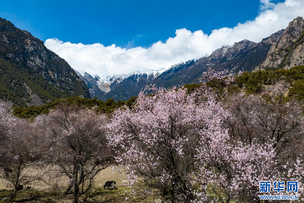 4月5日,在嘉黎縣尼屋鄉(xiāng)境內盛開的桃花。新華網(wǎng) 旦增努布 攝