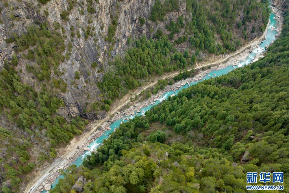4月5日,在嘉黎縣境內拍攝的“水磨巖”峽谷景觀(無人機照片)。 新華網(wǎng) 旦增努布 攝