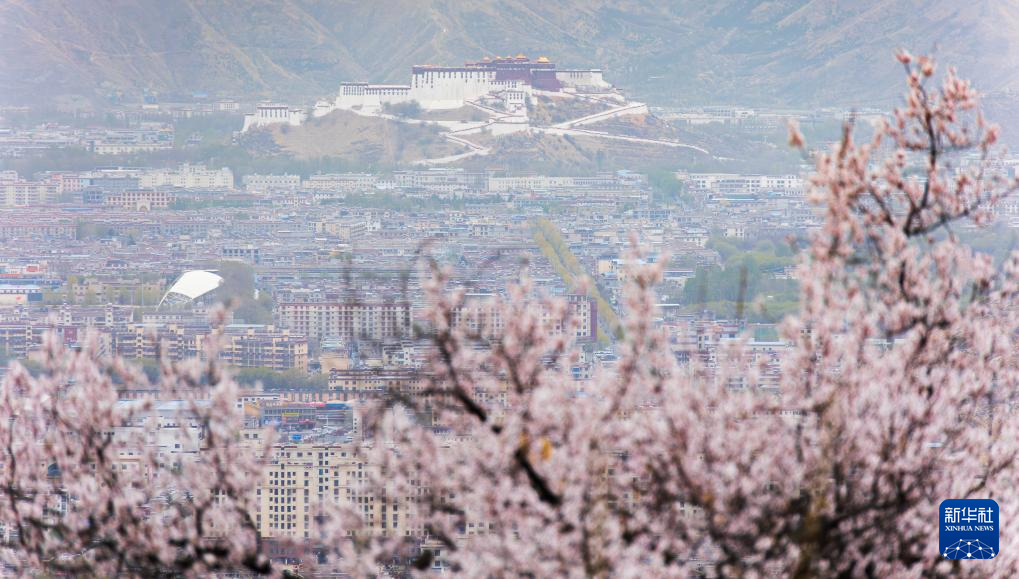 ??在位于拉薩北部的古剎帕邦喀附近拍攝的盛開(kāi)的桃花,遠(yuǎn)處是布達(dá)拉宮(4月9日攝)。新華社記者 丁增尼達(dá) 攝