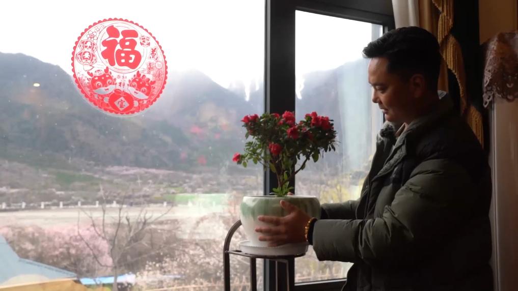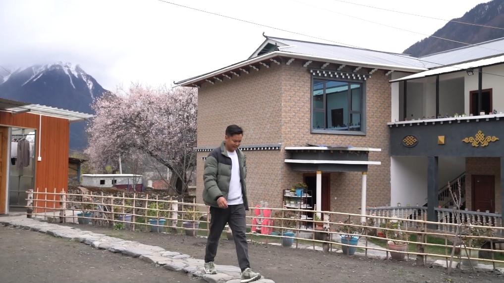 下午4點,林芝市波密縣傾多鎮(zhèn)古通村,遠(yuǎn)來的游客入住到村民洛松頓珠開辦的民宿。寬敞的客廳里,藏式家具整齊大氣,窗外古老的桃花樹隨風(fēng)散落著陣陣花雨。