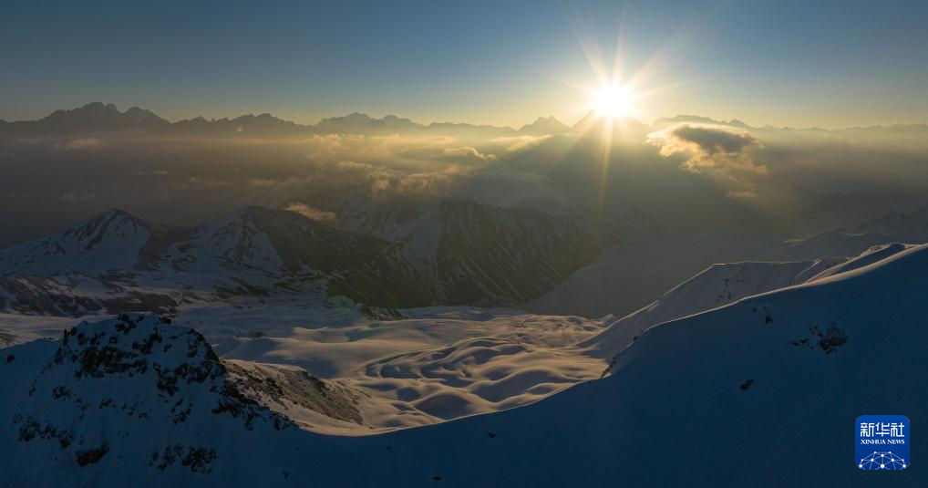 這是喜馬拉雅山脈的日出(4月17日攝,無人機照片)。新華社記者 洛卓嘉措 攝