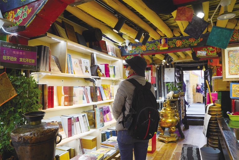 想在街邊的小店隨便逛逛?藏香店、氆氌店、羊毛卡墊店、藏裝店、各類唐卡店、書店……隨便一家都是特色滿滿。