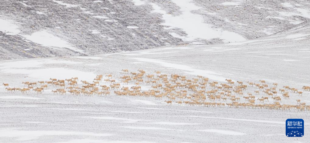 藏羚羊向產(chǎn)羔地遷徙(5月8日攝)。新華社記者 丁增尼達(dá) 攝
