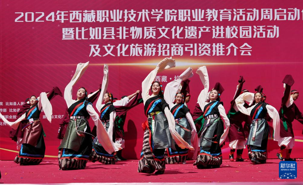 當(dāng)日,西藏職業(yè)技術(shù)學(xué)院職業(yè)教育活動(dòng)周在拉薩啟動(dòng),那曲市比如縣民族藝術(shù)團(tuán)非物質(zhì)文化遺產(chǎn)表演暨“鄉(xiāng)村振興 那曲奮進(jìn)”旅游推介走進(jìn)校園,激發(fā)人們對(duì)傳統(tǒng)文化和特色旅游的興趣?! ??