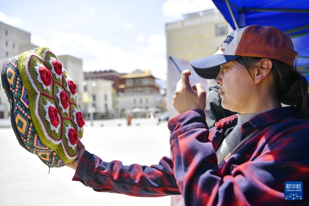 5月12日,在西藏職業(yè)技術(shù)學(xué)院職業(yè)教育活動(dòng)周啟動(dòng)儀式暨比如縣非物質(zhì)文化遺產(chǎn)進(jìn)校園活動(dòng)上,一名消費(fèi)者在挑選比如縣的特色旅游產(chǎn)品。新華社記者 張汝鋒 攝