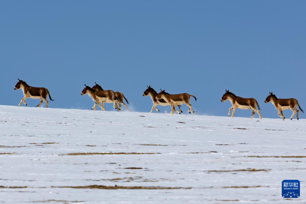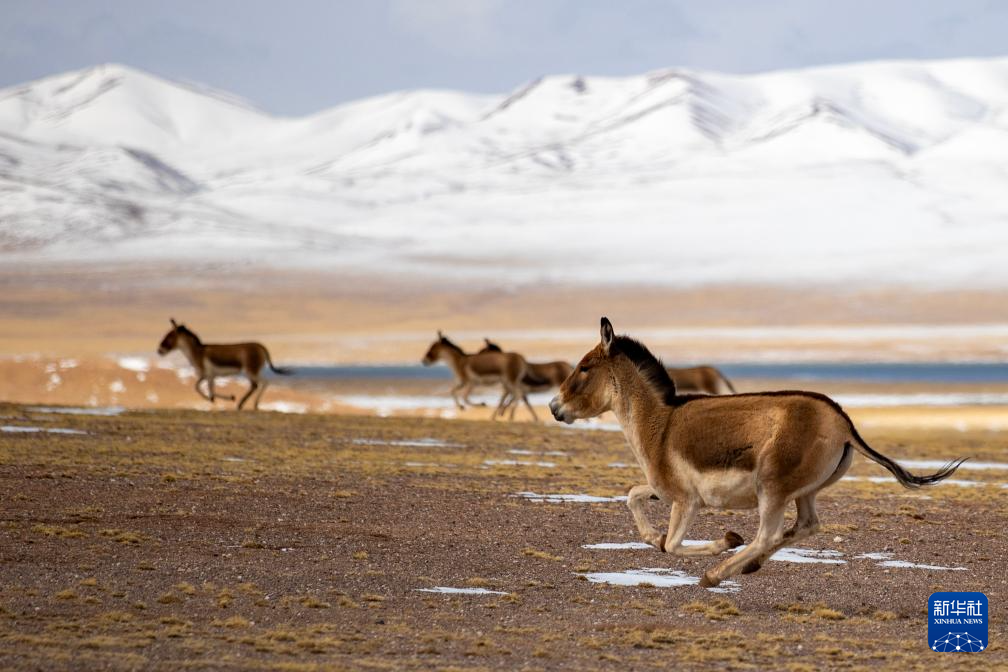 這是在西藏那曲市尼瑪縣境內的羌塘國家級自然保護區(qū)核心區(qū)拍攝的藏野驢(5月9日攝)。新華社記者 丁增尼達 攝 ??